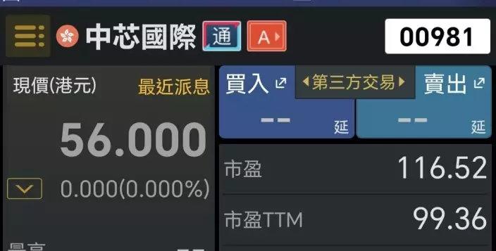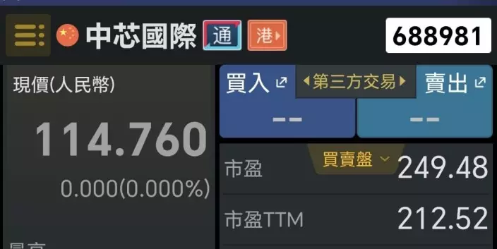 中芯國際(0981)週四內地A股收114.76元人民幣。