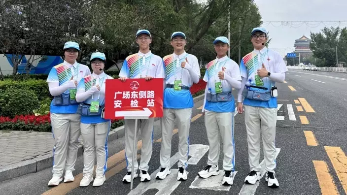 另高校生組成的數千人志工服務隊伍,亦承擔着觀禮引導、醫療保障、秩序維護等任務。