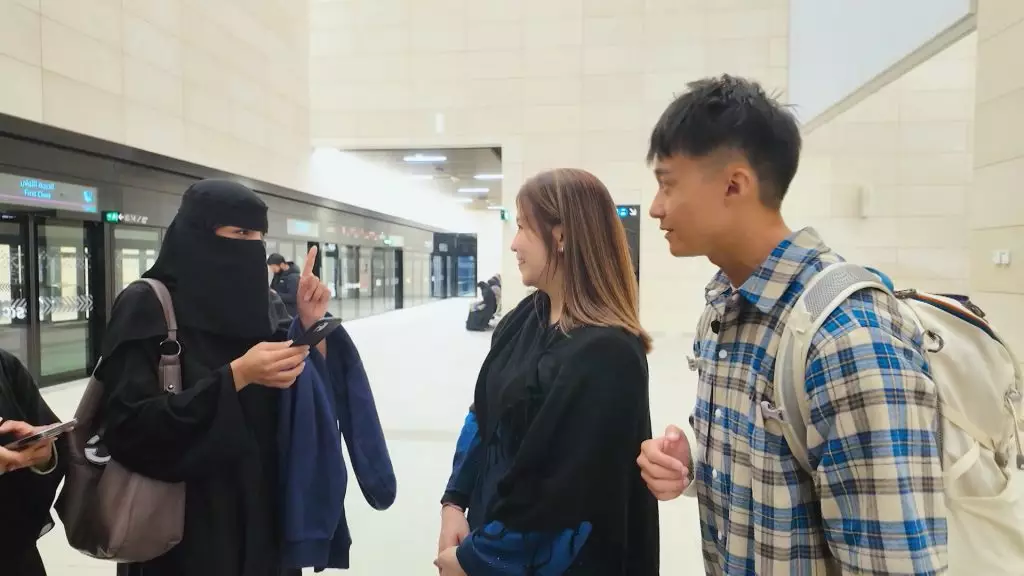 其後,兩人在試乘去年年底才投入服務的全新地鐵時亦發生小插曲,在拍攝期間有當地女子主動上前跟他們交換聯絡方式和拍照,事後娟姐開心表示:「嘩!我增加咗我個版圖喇!啲人會唔會以為我買啲中東粉絲撐場。」Chris回覆道:「佢話想睇下你嗰個Social Media呀,但係一提到可唔可以影一影佢哋,佢哋就即刻避。」