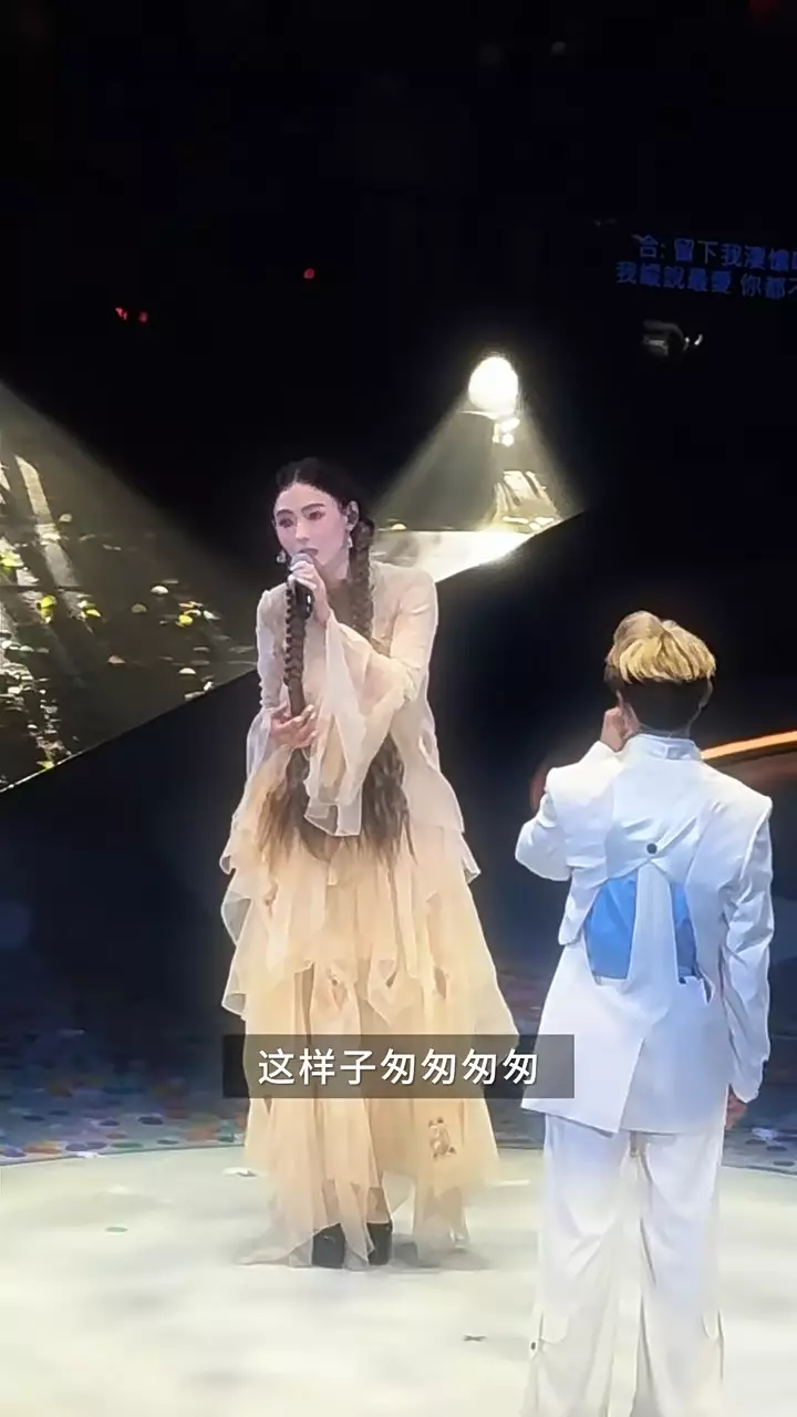 當晚,久未在香港公開露面的張柏芝,以一套飄逸的金色薄紗裙,配搭清新的孖辮造型亮相,仙氣十足。她與林家謙驚喜合唱其經典代表作《任何天氣》及《留給最愛的說話》,熟悉的旋律瞬間勾起全場觀眾的集體回憶,掌聲與歡呼聲此起彼落,氣氛達到頂點。