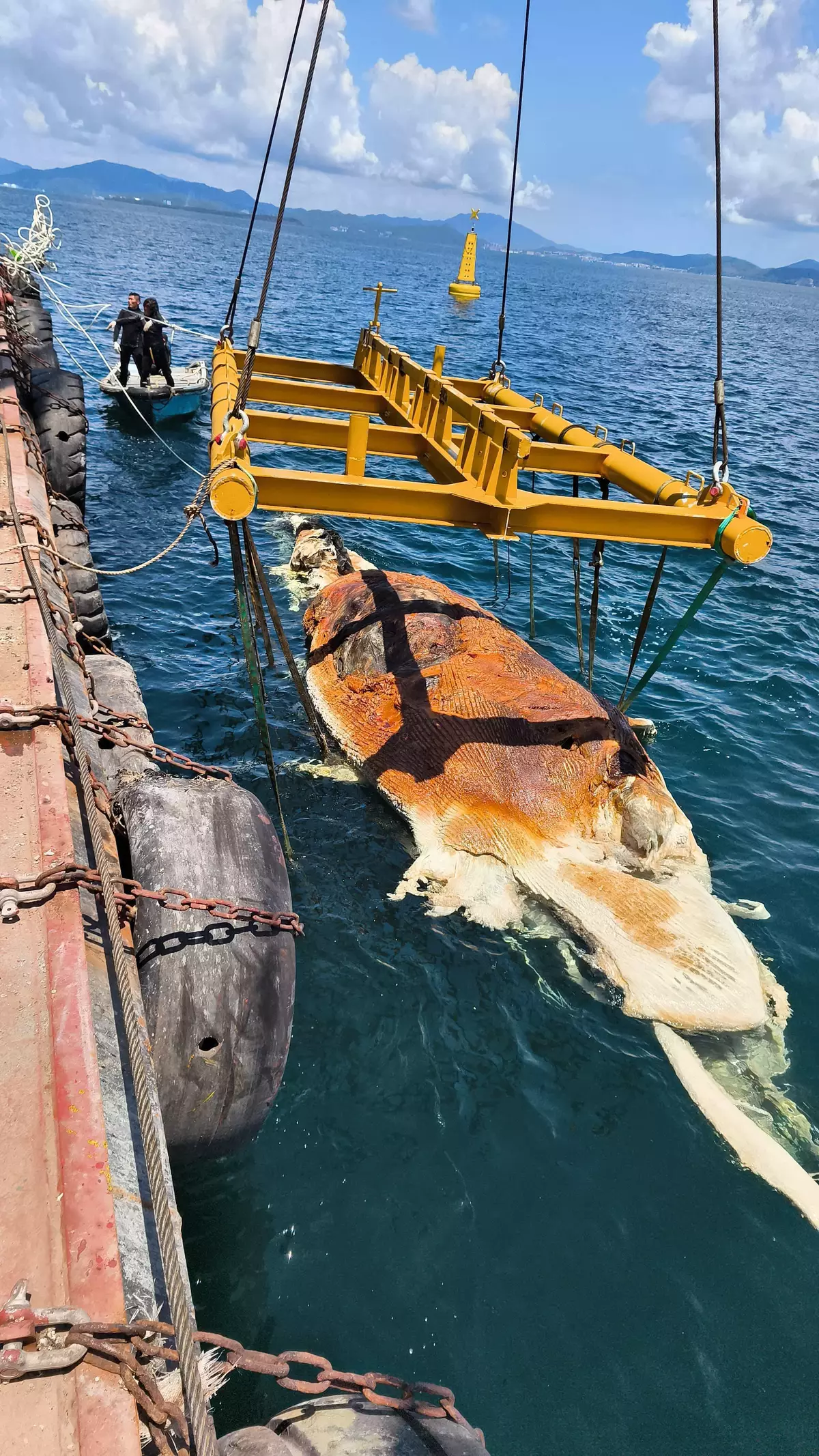 漁農自然護理署(漁護署)星期四(九月四日)傍晚接獲警方報告,於大鵬灣水域發現疑似一具鯨魚屍體。漁護署人員隨即聯同香港海洋公園和香港海洋公園保育基金人員前往現場進行調查。