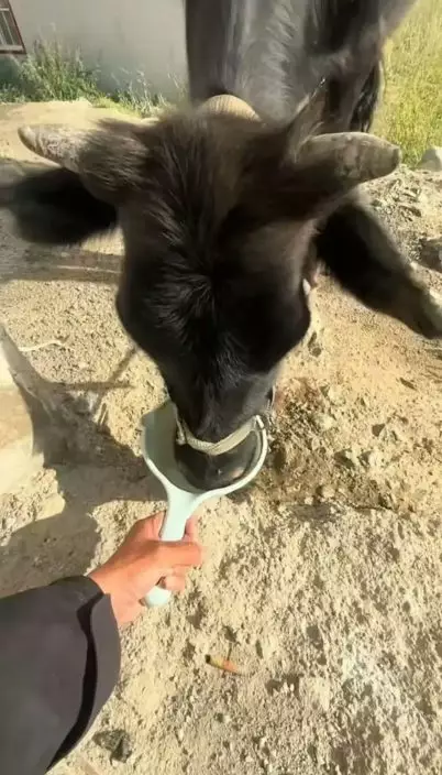 當日,小姜正在拿瓢倒水時,恰好遇到牛隻跑到旁邊舔草,於是便順手用瓢給牠餵水,「正好去倒水,牠跑到這邊舔草,我想它應該渴了,就拿瓢餵它,發現牠一口喝完了,再換一瓢又喝完了,索性換桶餵,網友們覺得很有趣」,不少網友笑稱這才是真正的「牛飲」。