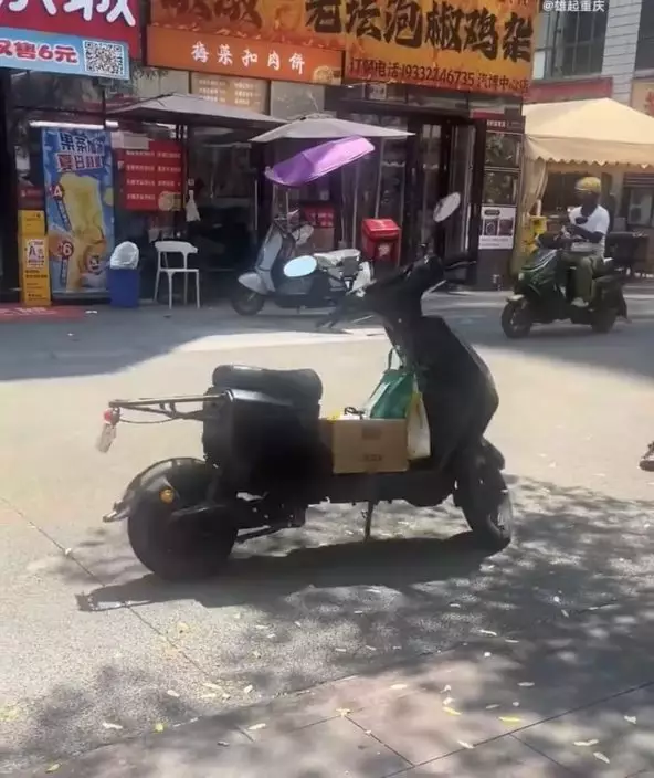 近日重慶街頭一輛電單車無人騎乘突然瘋狂自轉繞圈,詭異畫面嚇壞民眾。
