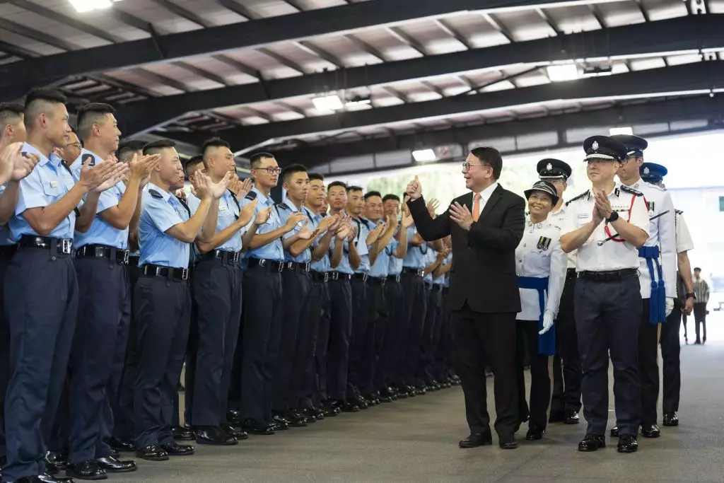 政務司司長陳國基出席警察學院結業會操致辭時,向結業學員作四點期盼,包括永保忠誠、恪守法律。他表示,無論身處哪個工作崗位,警務人員都要保持忠誠,以最高標準要求自身,確保每一次執法行動都經得起法律的嚴格考驗。