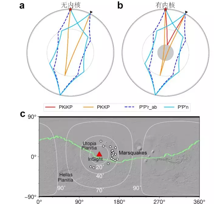 值得注意的是,實際觀測到的PKKP到時,比當前僅考慮液態核心的火星速度模型所預測的結果提前了50至200秒。這表明,火星核心具有分層結構,即外層為液態核心,而更深部則存在一個波速更高的固態內核。