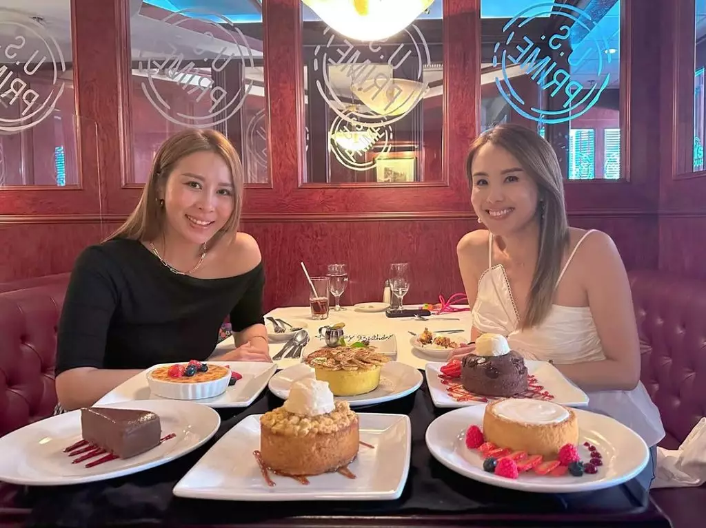 2003年香港小姐冠、亞軍曹敏莉和楊洛婷最近相約聚會,楊洛婷為好友曹敏莉慶生,二人均保養得宜。