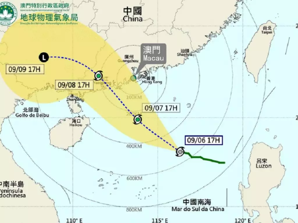 按現時預測,該熱帶氣旋未來一兩日將採取西北方向移動,並逐漸增強,大致移向廣東西岸,將採取較接近珠江口路徑,周一初時於澳門西南約150公里範圍內掠過,而且不能排除近岸增強的可能,明晚發出八號風球的機會為中等至較高。