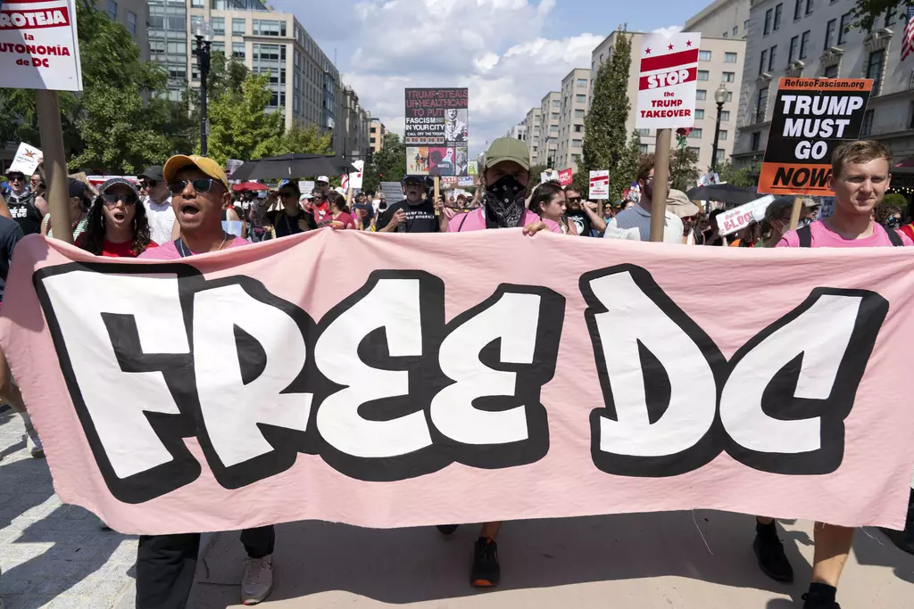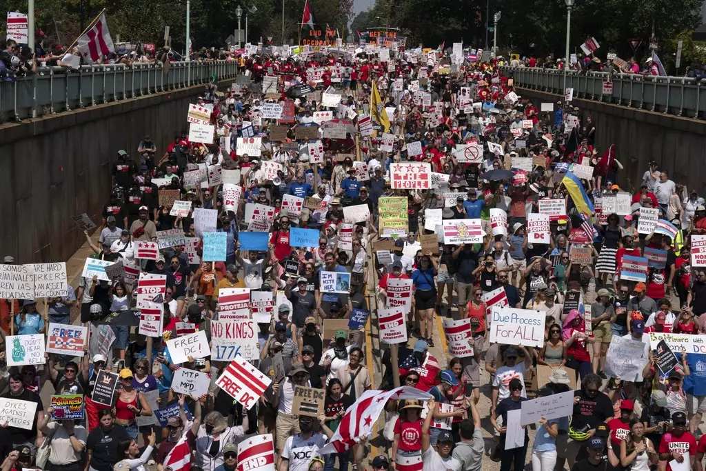 美國首都華盛頓有數千人示威,抗議總統特朗普政府在當地部署國民警衛隊。AP圖片