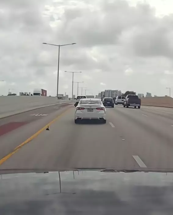 廚師駕車目擊小動物穿梭車陣急停車施救。影片截圖