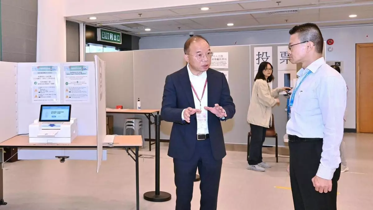 政制及內地事務局局長曾國衞上午巡視各個投票站。政制及內地事務局FB圖片