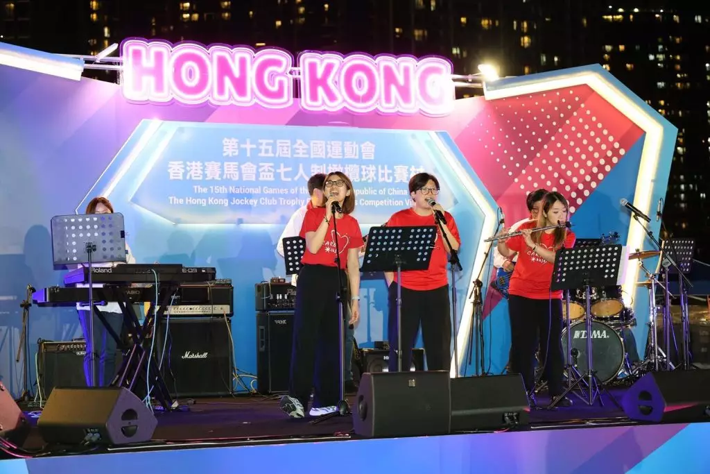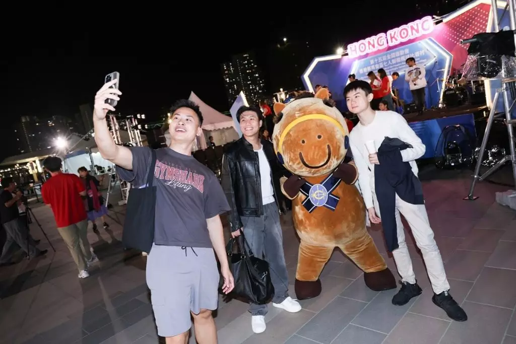 香港賽馬會在十五運會和殘特奧會比賽村設立互動攤位,馬會義工隊成員為市民畫上彩繪及在舞台上演出,帶動現場氣氛。