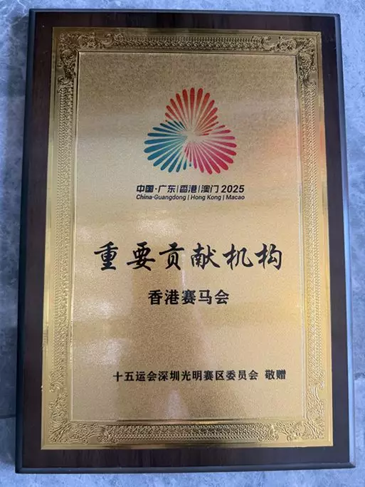 香港賽馬會獲十五運會深圳市光明賽區委員會頒發「重要貢獻機構」榮譽,以表彰其對十五運會馬術賽事成功舉辦的大力支持。