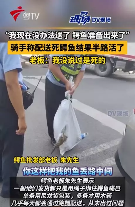 廣州外賣員接單運送「死鱷魚」途中見牠竟然「復活」掙扎嚇壞緊急報警,商家事後咁回應…