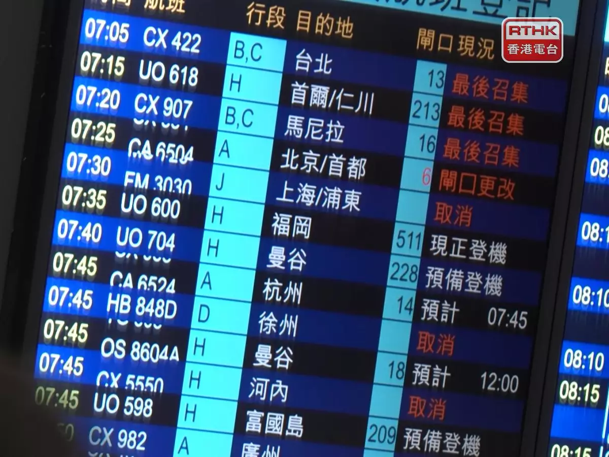 機管局預計今日可處理800班航班,有約100班航班會取消。
