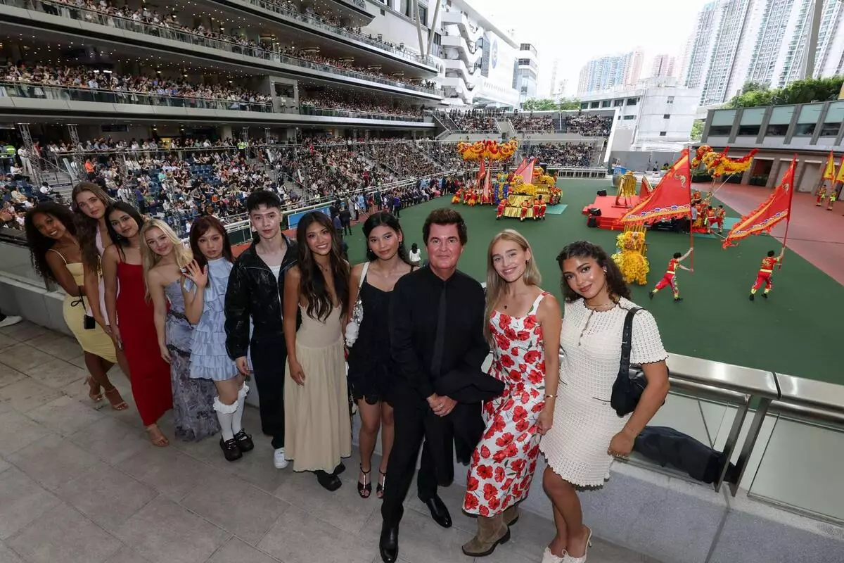 XIX Entertainment創辦人Simon Fuller(右三)聯同一眾Now United成員盛裝出席「202526馬季開鑼日」活動。