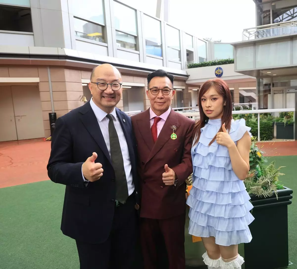 Now United 中國香港區代表Ariel 曾家瑩 (右)、「嘉應高昇」馬主嘉應團體之代表梁錫光(中)與香港賽馬會公司事務執行總監譚志源(左)合照。