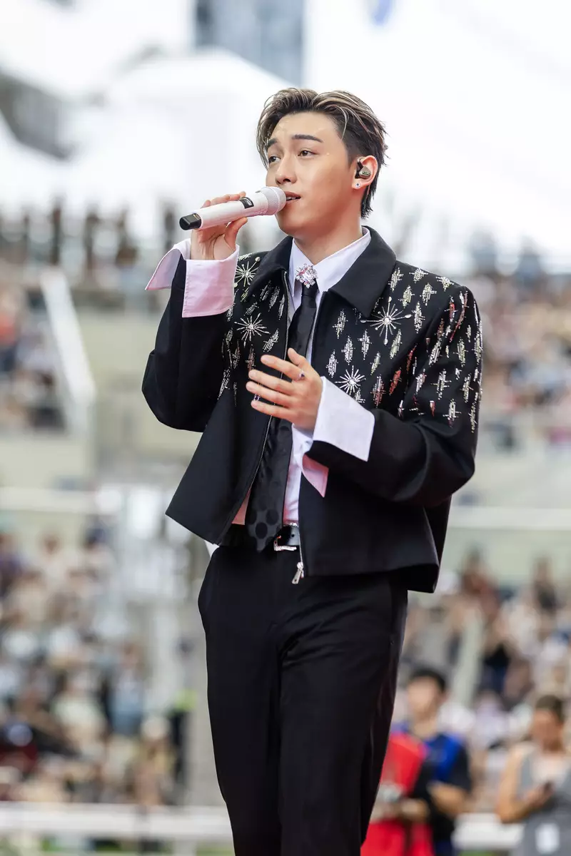 MC張天賦再次蒞臨沙田馬場獻唱,慶賀開鑼。