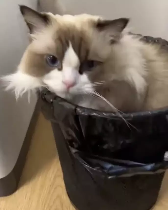 也有網民猜測,這隻布偶貓或許覺得垃圾桶的緊密包覆感比高級貓窩更具安全感,又或者這位仙氣飄飄的貓咪內心其實藏著一隻愛搞亂的小淘氣,才會做出如此出人意表的舉動。