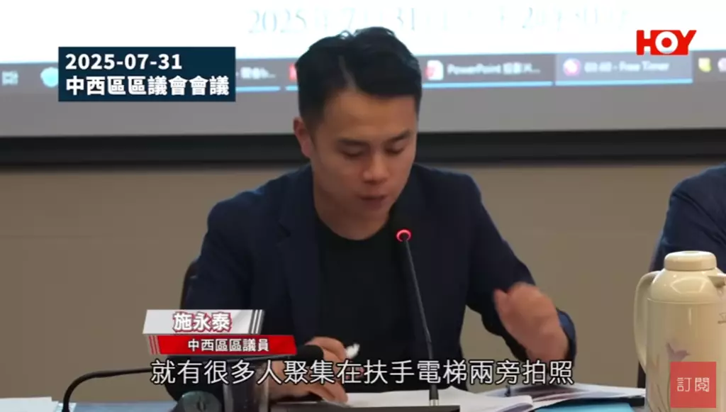 當區區議員頻繁收到投訴,指遊客聚集拍照不僅影響電梯運作,亦增加意外風險,對公共安全構成隱憂。中西區區議員施永泰在區議會會議上指出,假日時扶手電梯兩旁常有大量遊客停留拍照,「扶手電梯要不停往上行,佢哋停咗喺度嘅時候,變相後面嘅人要避開佢哋,好容易釀成人踩人的情況發生。」