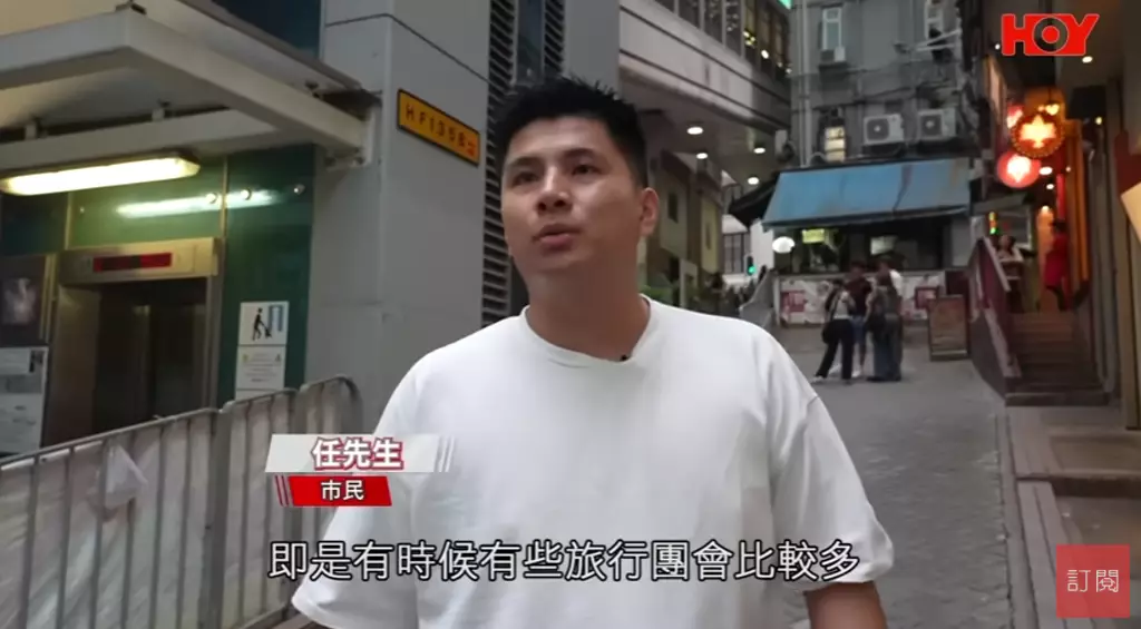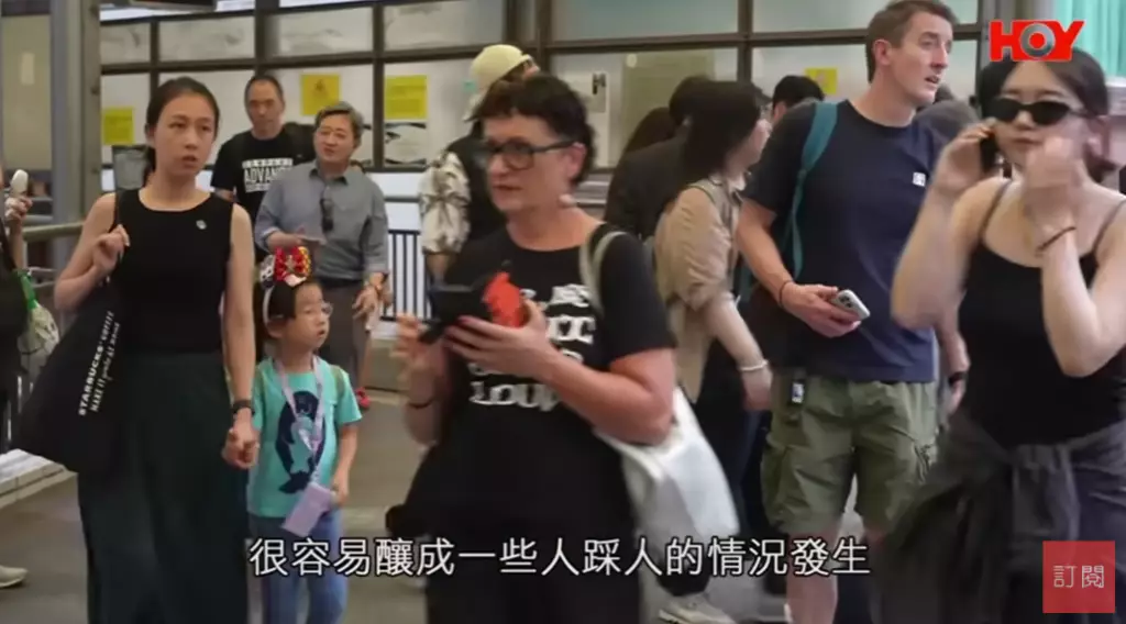 中西區區議會增選委員王嘉駿補充,電梯中段位置尤為混亂,「由皇后大道中上第一段,第二段中間有樓梯同人流交錯,好多人喺中間穿插,扶手電梯嘅人停唔切,好多時候會有碰撞,甚至乎見到有人跌倒,好混亂、好危險。」