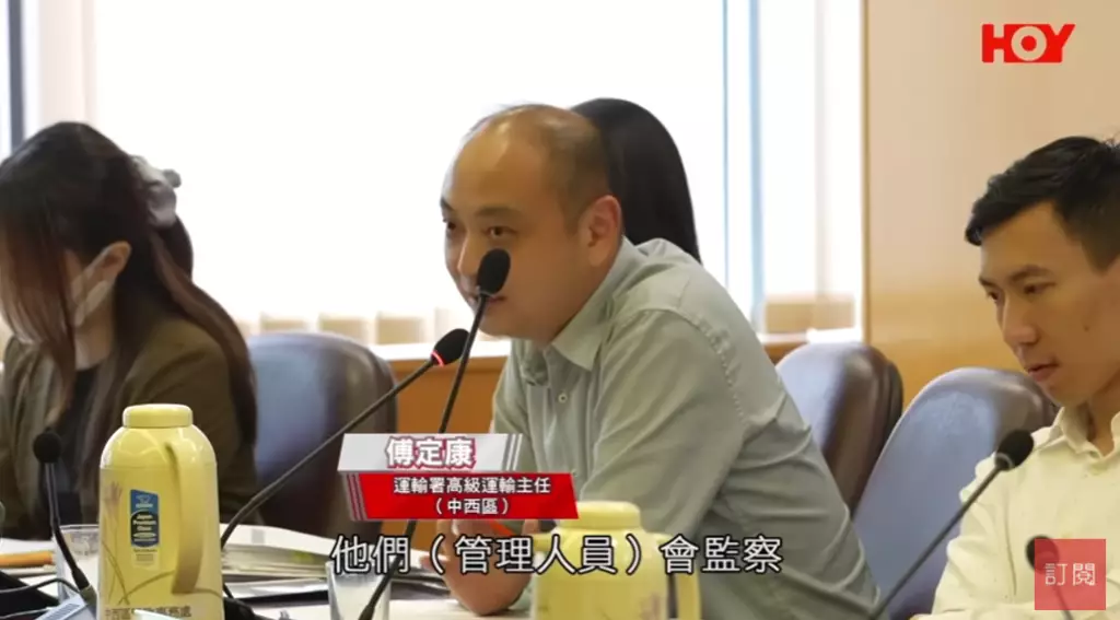 運輸署高級運輸主任傅定康在表示,管理公司平日都會派員巡查電梯的使用情況,「佢哋會監察扶手電梯系統運作,再加上巡查及人流管制等。而廣播系統係經後台,有兩方面,一個係預先錄制的呼籲或指示,經後台播放;另一個就係由管理人員即時作出針對方的指示。」