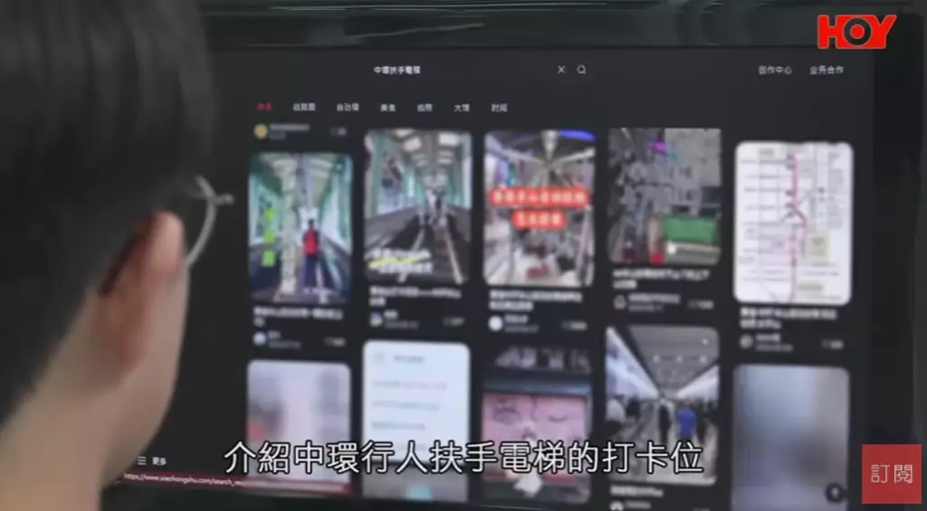 中環行人扶手電梯因其電影場景及明星效應,近年在內地社交平台小紅書被熱烈推介,甚至形容是香港必去打卡的項目,吸引大量遊客專程前來拍照留念。市民任先生表示:「有時有啲旅行團會比較多,就會一堆人企喺度影相,即係一出扶手電梯就堆晒喺度。」不過,另一名市民則認為假日情況尚可接受,「星期六、日唔算太大問題,唔算擠迫。」