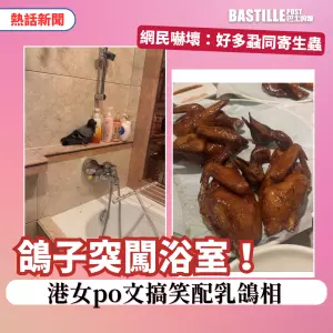 一港女日前在社交平台發文,稱家中浴室清晨竟有鴿子突然闖入,嚇得她大驚失色,最終急中生智,以一招成功將牠請出家門,由於她po文搞笑配上乳鴿相,隨即引發大批網民熱烈討論。