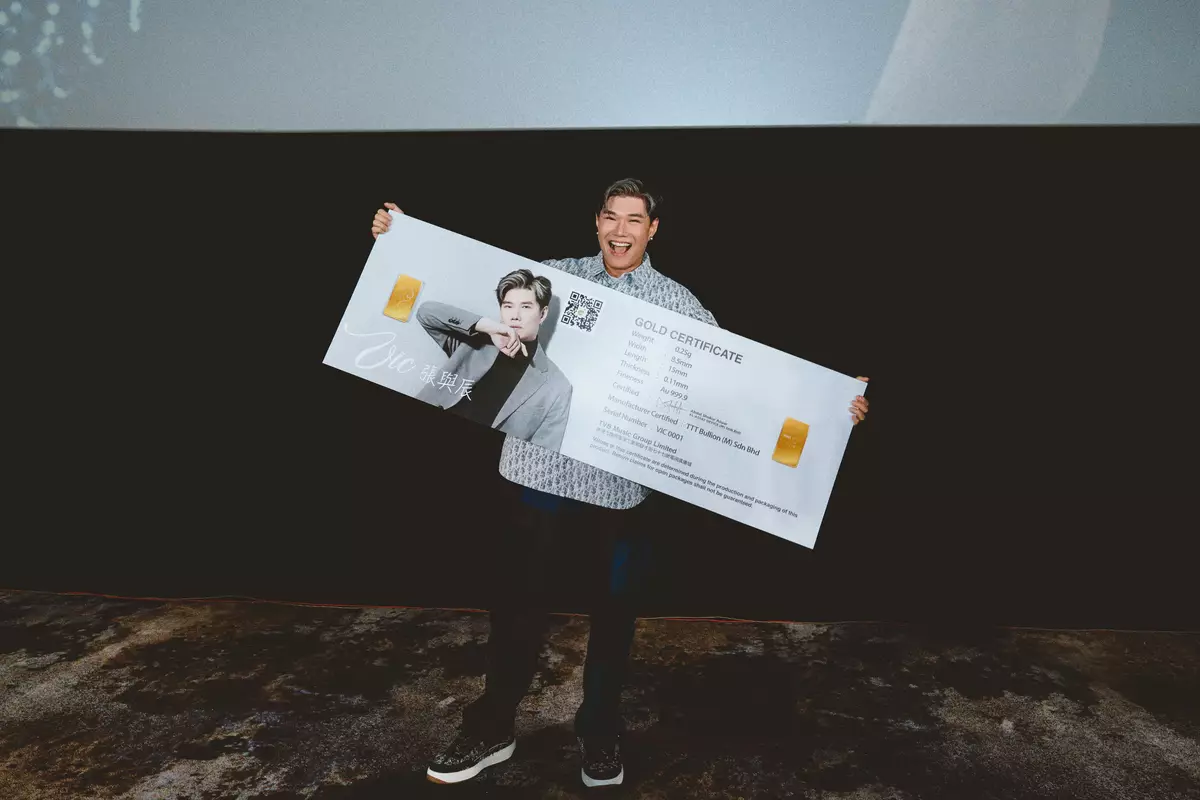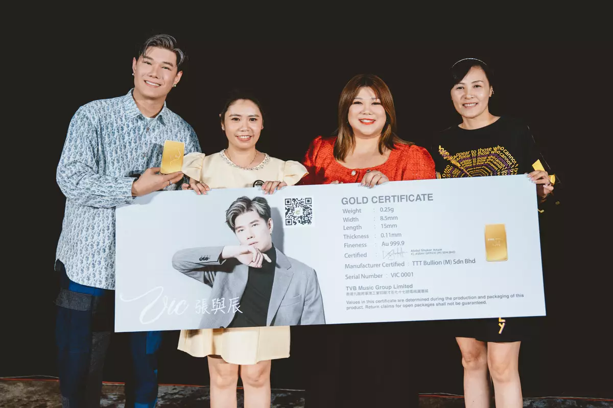 最驚喜的是,張與辰更是第一位馬來西亞華裔藝人推出純金金片的藝人!「Vic張與辰限量純金收藏卡」首站設定在家鄉馬來西亞推出,他更隆重其事返馬出席推介禮,他也感動跟大馬歌迷説:「我回來了!我終於可以在比賽後回來跟大家見面,可以親自跟大家説謝謝,歌迷們在比賽期間給了我很多鼓勵,希望接下來可以帶更多不同的作品送給大家。」