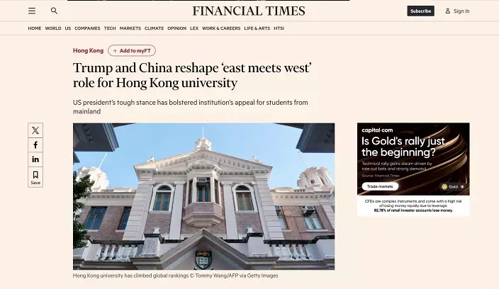 《金融時報》報道指,不少內地學生都選擇到港大留學而放棄美國。