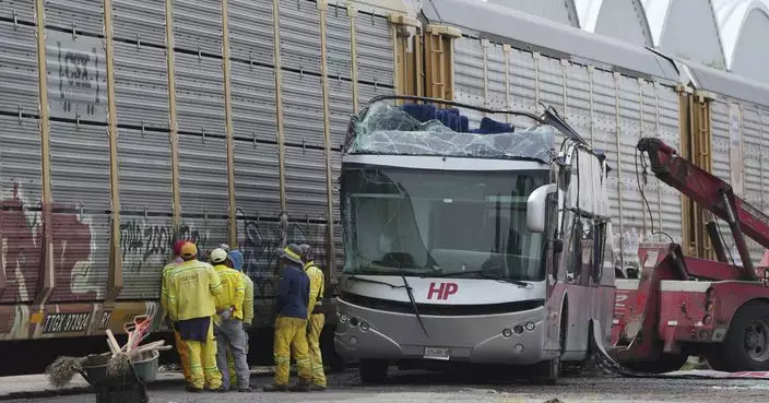 墨西哥有貨運火車與巴士相撞。AP圖片