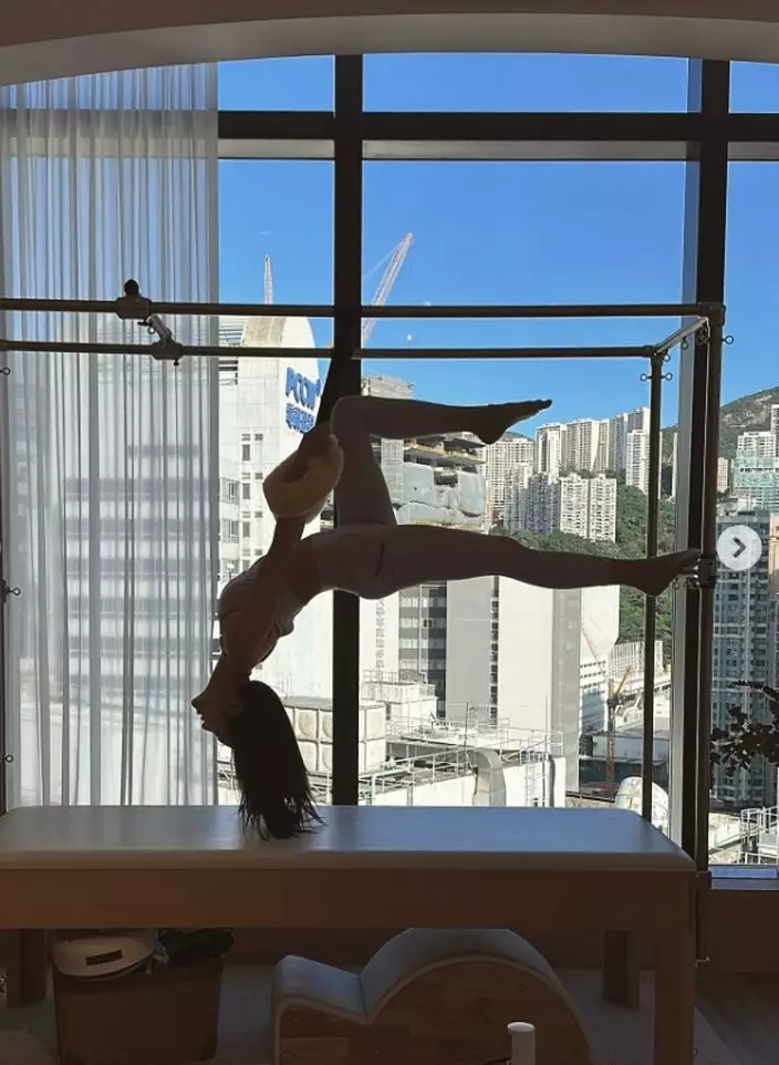 Kelly日前於IG分享一段練習影片,見她身穿瑜伽小背心與緊身運動褲,於懸掛半空的絹布上施展「倒掛金鈎」,動作流暢且肢體舒展極具美感,展現出驚人的核心力量與柔韌度。她更以英文發文寫道:「對自己做出承諾,開啟我的普拉提時代,實時觀看我第一次練習倒立。給自己一個優雅的初學者身份,同時也慶祝自己開始的勇氣,很高興能記錄我的進步。」