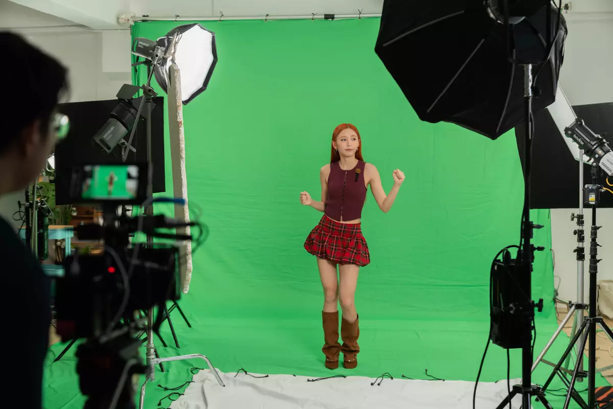 IvySo於綠幕前「沉浸式」演戲、模仿遊戲角色。