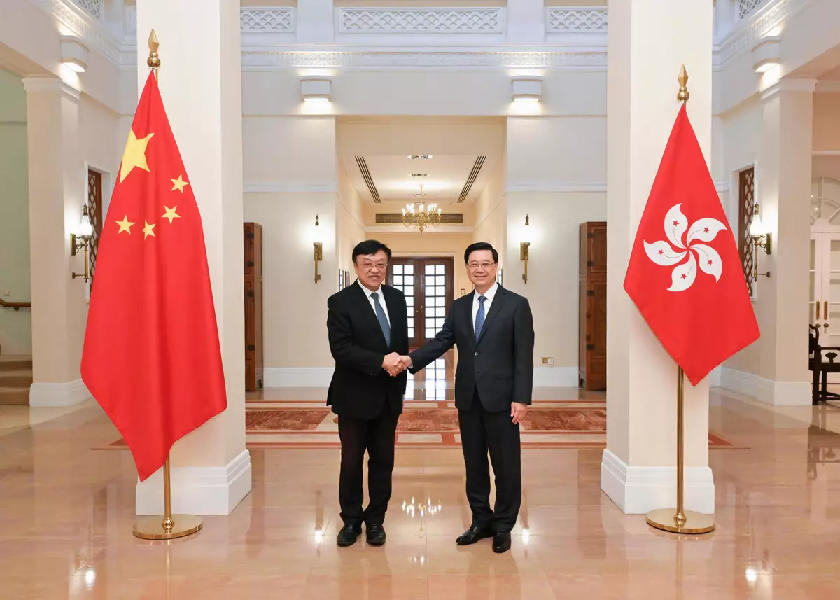 行政長官李家超在禮賓府與海南省委書記馮飛會面,就深化瓊港合作交流意見。