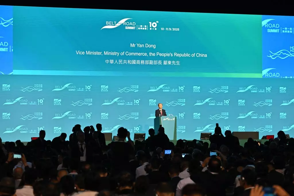 第十屆「一帶一路高峰論壇」在灣仔會展開幕。國家商務部副部長鄢東致辭說,商務部近年與特區政府密切合作,全力支持香港參與共建一帶一路,為香港開拓內地和國際市場。
