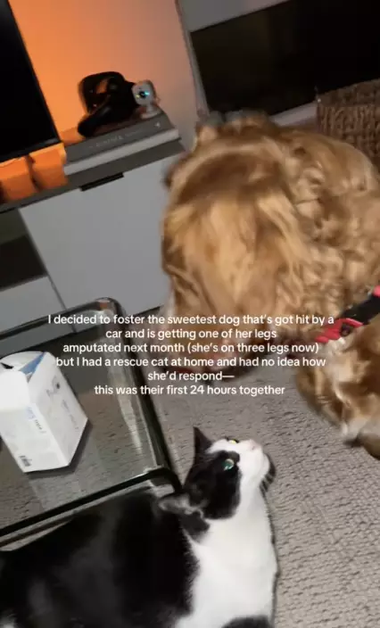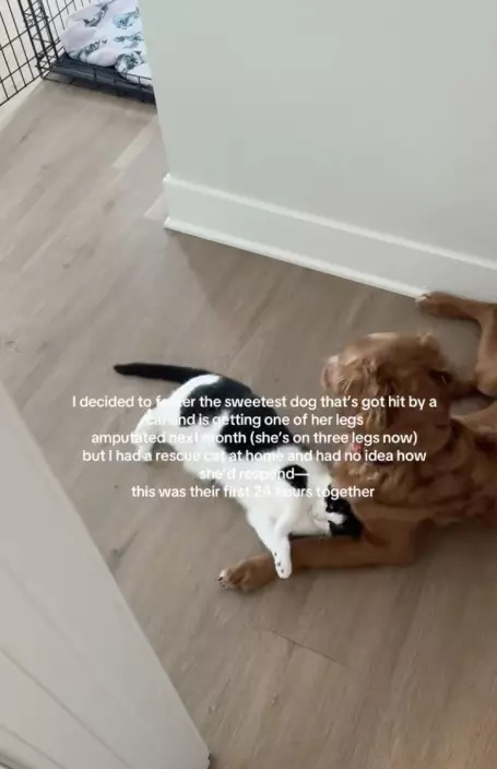 綜合外媒報導,美國田納西州一名女飼主費絲(Faith)早前領養了一隻因車禍而失去右爪的流浪狗。起初帶狗狗回家時,她一度擔心家中的賓士貓無法與新成員和平共處,所幸兩隻毛孩會面當晚便建立起友誼,互動畫面相當溫馨。