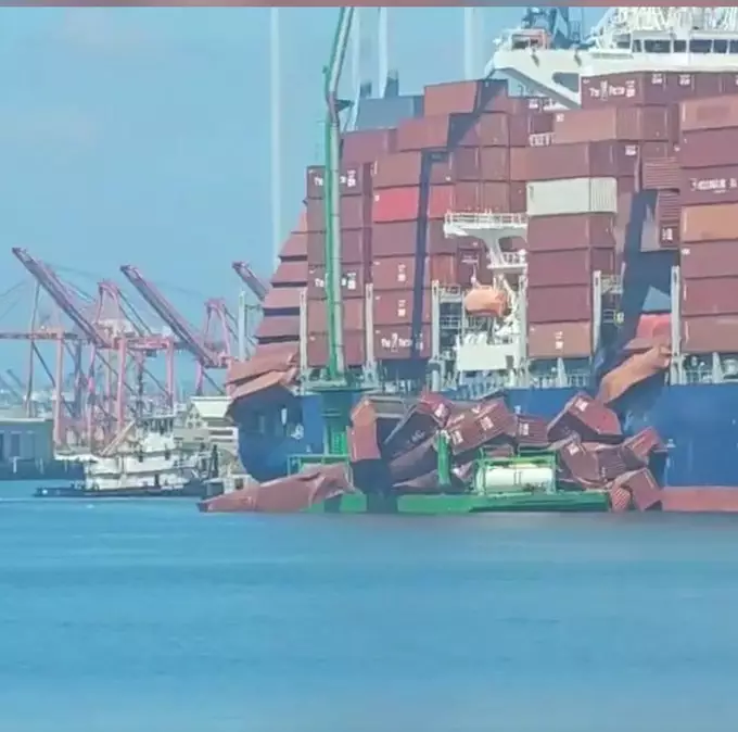 Breaking news from the Port of Long Beach 🚨 A ship at ITS listed violently around 9 AM, sending containers crashing into the water and onto a barge. Company has not confirmed details yet. #CraneDaddy</a > #PaceOfTheWaterfront</a > #DockLife</a > #MaritimeNews</a > pic.twitter.com/l5XLuCVo9H</a ></p >— Cranedaddy (@Leroyscomedy) September 9, 2025</a >