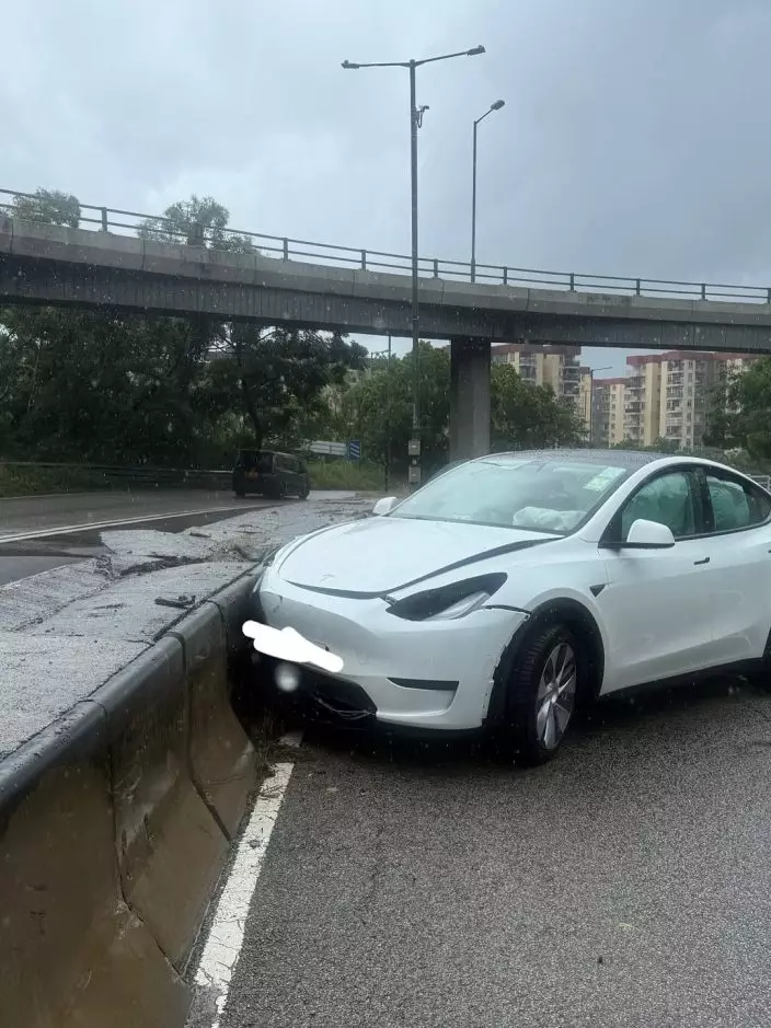 8號風球下,朝早揸車返工,去到龍翔道入彎跣呔架車突然失控,撞上石壆,係無超速下衝力都好大,一撞上去全部airbags彈曬出黎,車外車內都出晒煙,經過嘅車都叫我即刻落車,驚架車着火。撞咗車嘅一刻唔係好知發生咩事,個頭有啲暈耳仔有啲wing,但係都係清醒,即刻攞電話報警,過程中好多車都停低幫手,多謝晒佢哋🥹🙏🙏🙏