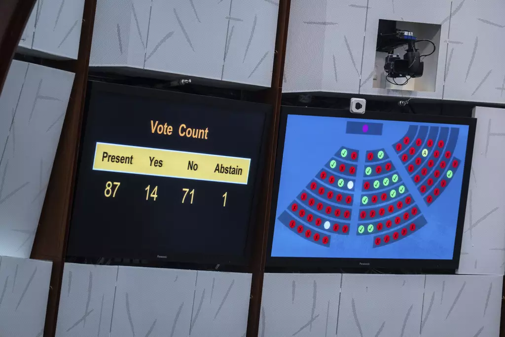 立法會以大比數二讀否決《同性伴侶關係登記條例草案》。AP圖片