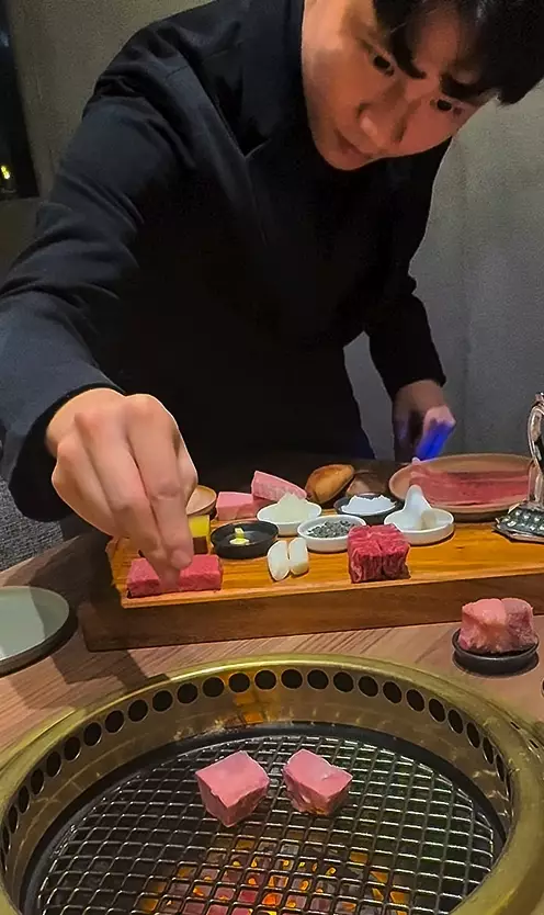文頌嫻在IG分享影片,並留言:「兩姊妹孖咇去咗中環一間日式燒肉餐廳補祝生日,好食又抵食,親民價嘆和牛Omakase,仲有專人燒肉服務,值得推介!」影片中,二人大嘆不同種類的和牛,以及其他美食,全程都食得好滋味!食完大餐,文頌嫻為周家蔚準備了生日驚喜,餐廳職員捧着設計精緻的甜品拼盤現身,令周家蔚相當興奮,與文頌嫻嘴嘴,又用沾了忌廉的手指點在文頌嫻的鼻子,姊妹感情輩子好!