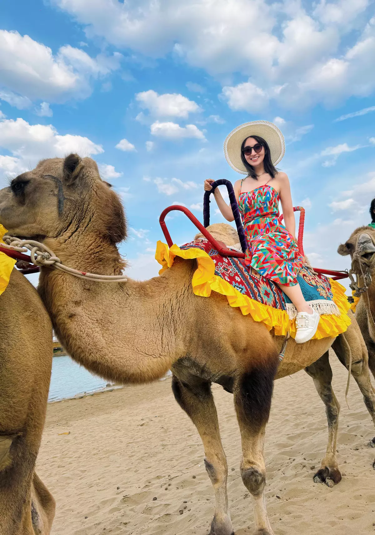 最令可宜難忘的,是在塔克拉瑪干沙漠騎駱駝觀日落,她還首次體驗glamping奢華露營:「一行出個帳幕,望住個美景真係不得了!」