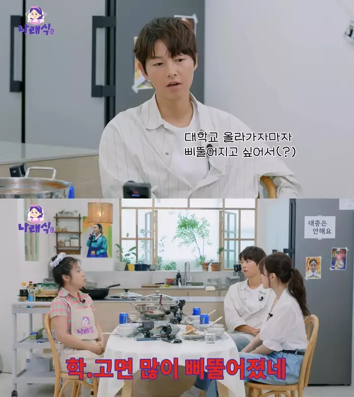 宋仲基還透露,自己與朴娜勑同住一個小區,每天早上7至9點會在梨泰院散步,卻從未偶遇深夜出門的朴娜勑,令現場笑聲不斷。他更回顧大學時期的「模範生」生活,笑稱當時只知埋頭苦讀,毫無人氣,直到上大學後才「變壞」,開始追尋自我,最終走上演員之路。
