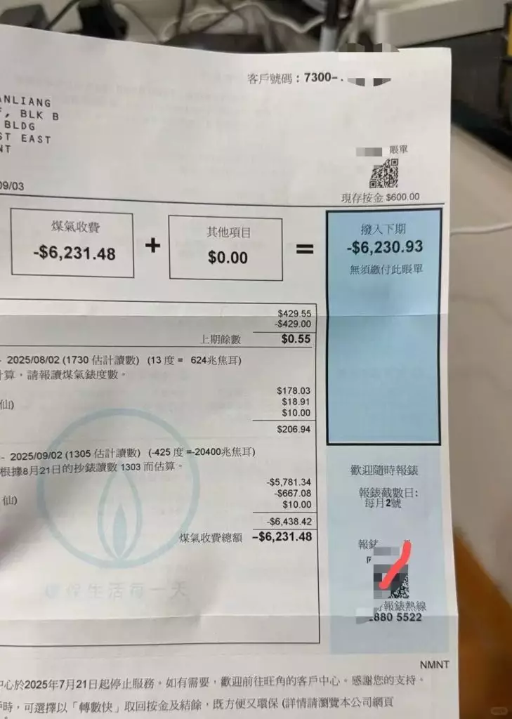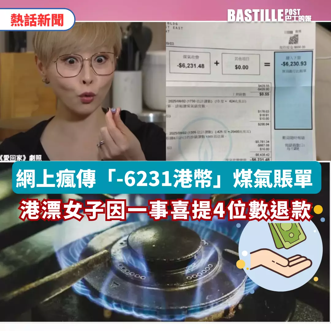 日前網上瘋傳一張金額為「$-6231.48」的煤氣賬單,顯示煤氣公司需退還逾6000元的「負數賬單」給事主,相片曝光掀起網民熱議。
