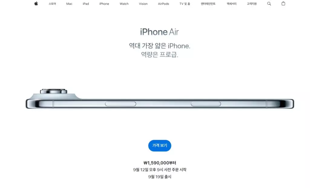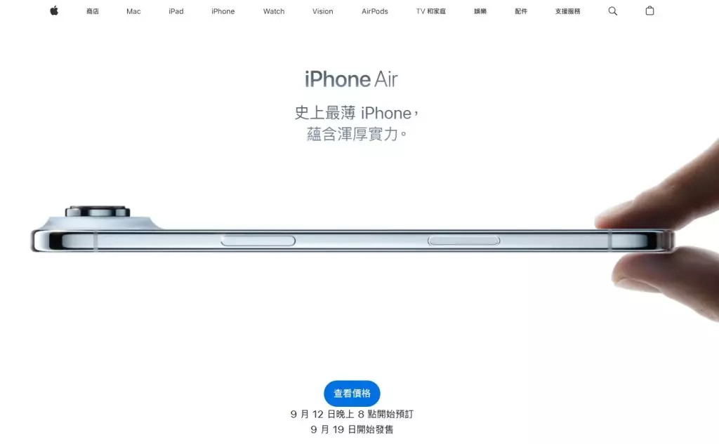 把官網上 iPhone Air 的那隻手消失了 🤏🤏🤏