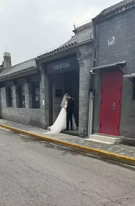 有網民在北京胡同偶遇這對愛侶正在拍攝婚紗照
