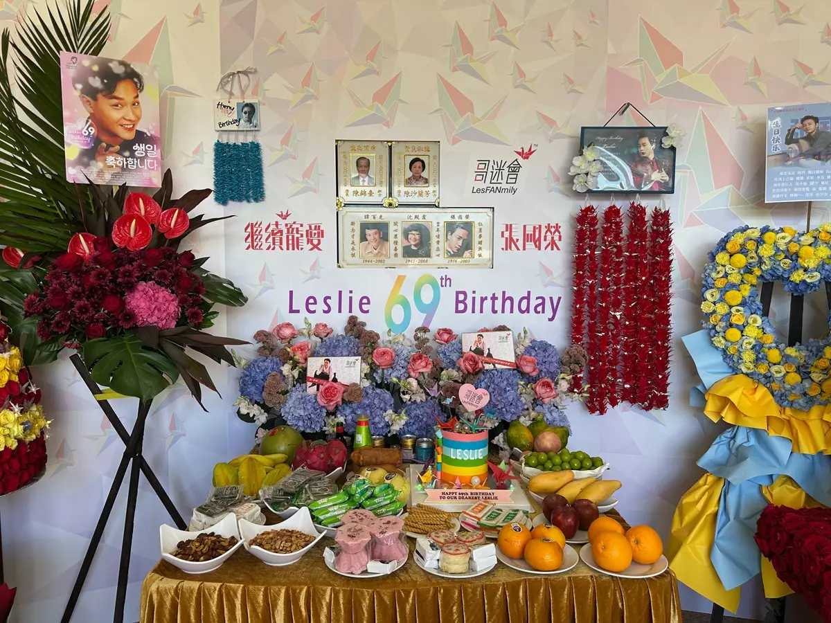 陳太不僅準備了「哥哥」喜愛的食物和水果,還訂製了彩虹紙鶴蛋糕及佈置粉彩紙鶴背景,祝願在遠方的「哥哥」自在翱翔,安然寧靜。陳太並特別印製張國榮珍藏紀念卡於現場送給「哥」迷,笑問大家是否已為明年「哥哥」70歲誕辰做好準備!