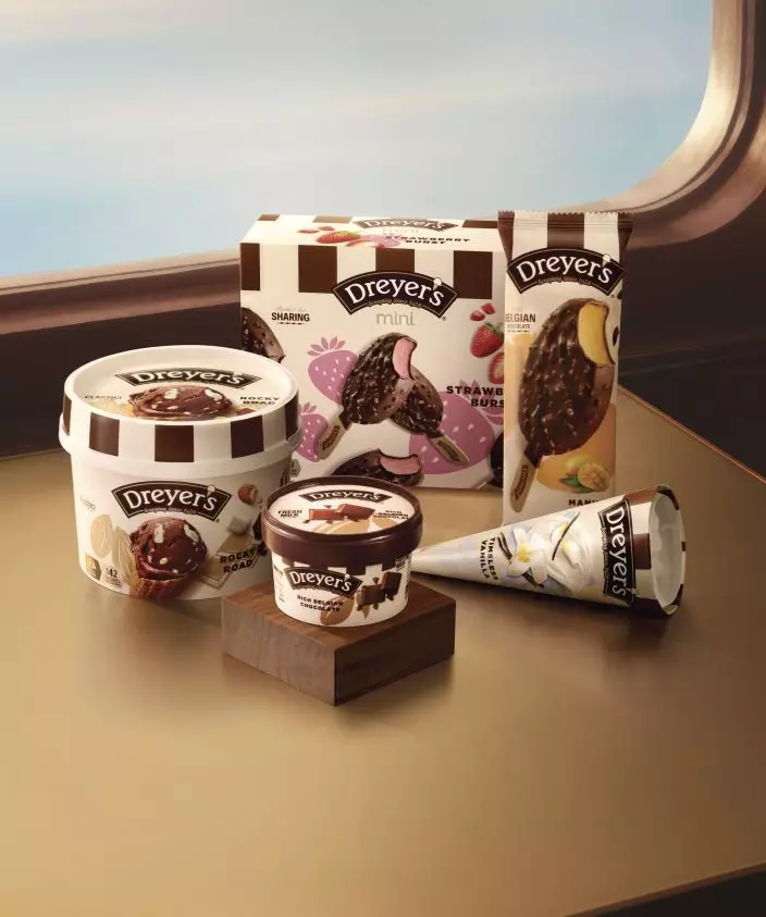 DREYER’S®全新包裝延續經典啡色主調,簡潔條紋設計煥新登場。