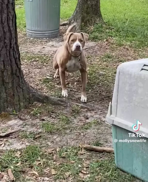愛普爾經詢問鄰居後得知,10歲比特犬「莫莉」(Molly)原本由前屋主飼養,但對方因不願繼續照顧,便隨意棄養於舊居。據悉,莫莉已在後院獨自困守數月,期間靠熱心鄰居餵食才得以勉強維生。