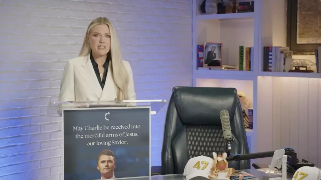 埃里卡站在已故丈夫曾經用作錄製節目坐過的椅子旁邊致辭,期間情緒激動。她說感謝總統特朗普及副總統萬斯的愛與支持,又說柯克全心全意愛她及兩名孩子,這是最重要的事情,對於如何向兩名孩子交代柯克的死訊,她感到茫然。