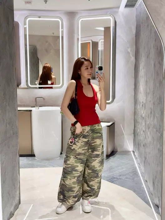 韓國女神韓韶禧日前來港舉行見到會,35歲的TVB小花鄧伊婷(Irina)都有去朝聖,她在IG晒出去睇騷的靚相,可見她紅色背心搭配迷彩長褲,打扮看似普通,但其實暗藏玄機,她背心側面有個「古惑的窿」,性感程度即刻大增,網民亦紛紛留言大讚:「靚靚伊婷」、「索爆汁汁姐」、「靚到犯規」、「越來越靚女,笑容相當甜美」、「我女神最正!」