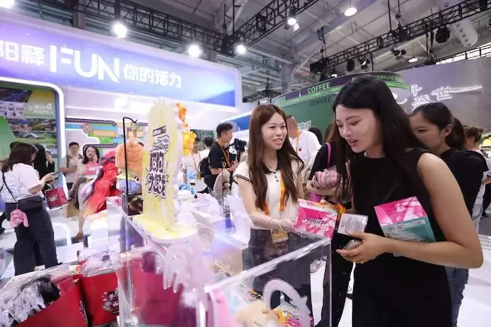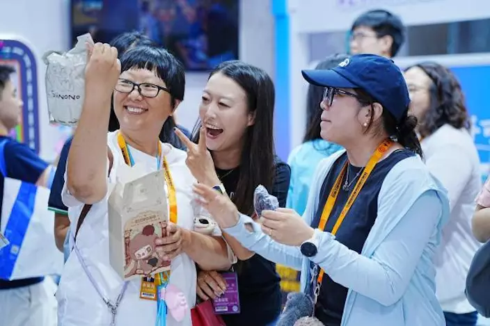 在2025年中國國際服務貿易交易會(服貿會)上,潮玩展區的熱度讓人直觀感受到這股潮流。泡泡瑪特、Letsvan奇夢島等國內潮玩企業展台前人流如鯽,不少觀眾一邊和熱門IP合影「打卡」,一邊體驗拆盲盒的樂趣。展會相關負責人透露,WAKUKU、SIINONO等新IP掛飾在開幕當天就賣出了數萬元,「包搭子」儼然成了許多年輕人的標配。